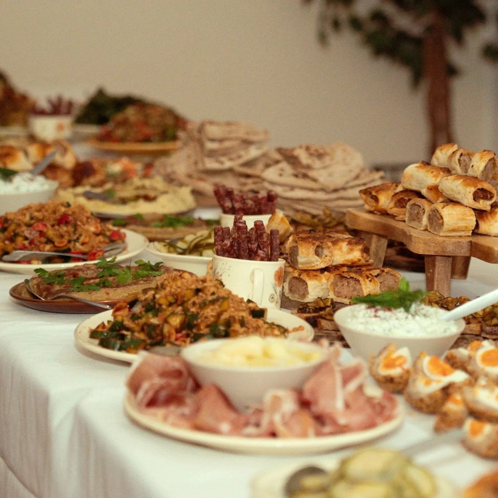 We can cater all occasions from weddings to birthdays with our homemade buffets. Hot or cold, we can create a menu to your liking. Menus can include an array of items from our house favourites like sausage rolls and scotch eggs, dips and salads, or hot pulled lamb on our homemade flatbreads.